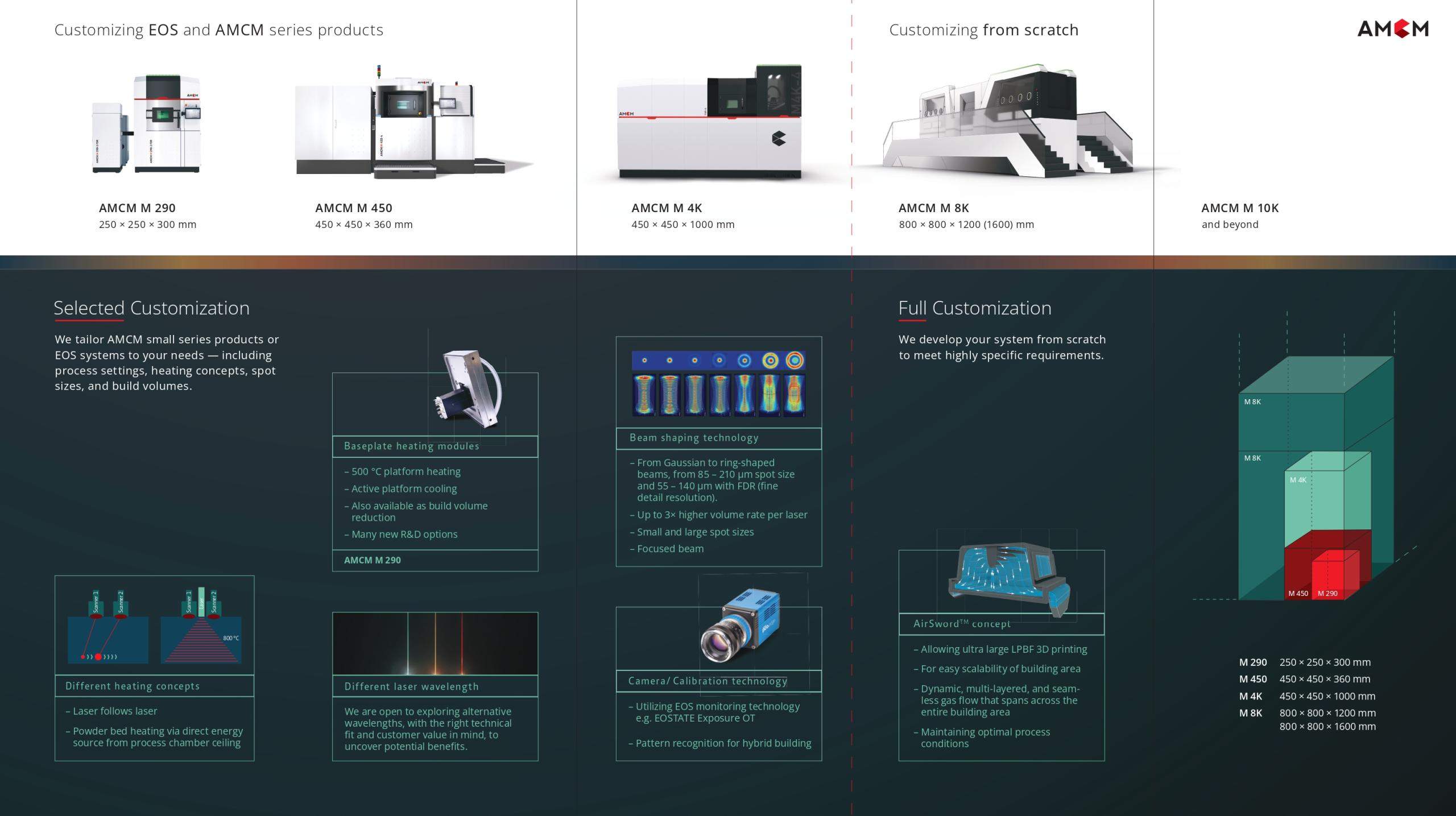 The future of metal 3D printing – tailored to you. From selectively customized AM systems to fully customized, i. e. re-engineered solutions, AMCM pushes the limits of additive manufacturing.